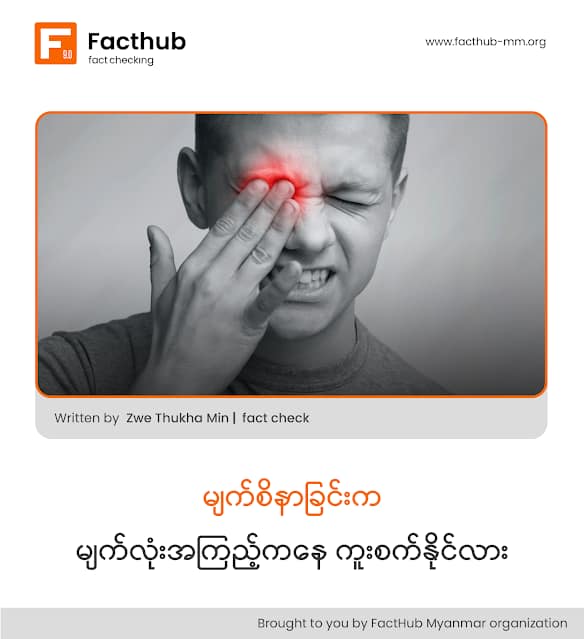 လတ်တလော ဒေသတွင်းမှာ ဖြစ်ပွားမှုနှုန်း မြင့်တက်နေတဲ့ ရောဂါတစ်မျိုး ရှိပါတယ်၊ မျက်စိနာခြင်းပါ။ မျက်စိနာခြင်းနဲ့ ပတ်သက်လို့ ဟိုးအရင်ကတည်းက နာမည်ကြီးတဲ့ အယူအဆတစ်ခုရှိပါတယ်၊ မျက်စိနာတဲ့ ရောဂါဟာ တစ်ယောက်နဲ့ တစ်ယောက် မျက်လုံးအကြည့်ခြင်းကနေ ကူးစက်နိုင်တယ်ဆိုတာပါ။ ဒီအယူအဆက မှန်ကန်ရဲ့လား၊ ပညာရှင်တွေက ဒါ အယူအဆကို အမှန်လို့ သတ်မှတ်ရဲ့လား၊ စတာတွေကို Fact Hub က အပတ်စဉ် မျှဝေနေကျ အချက်အလက် စစ်ဆေးတဲ့ ဆောင်းပါးအနေနဲ့ တင်ဆက်ပေးထားပါတယ်။