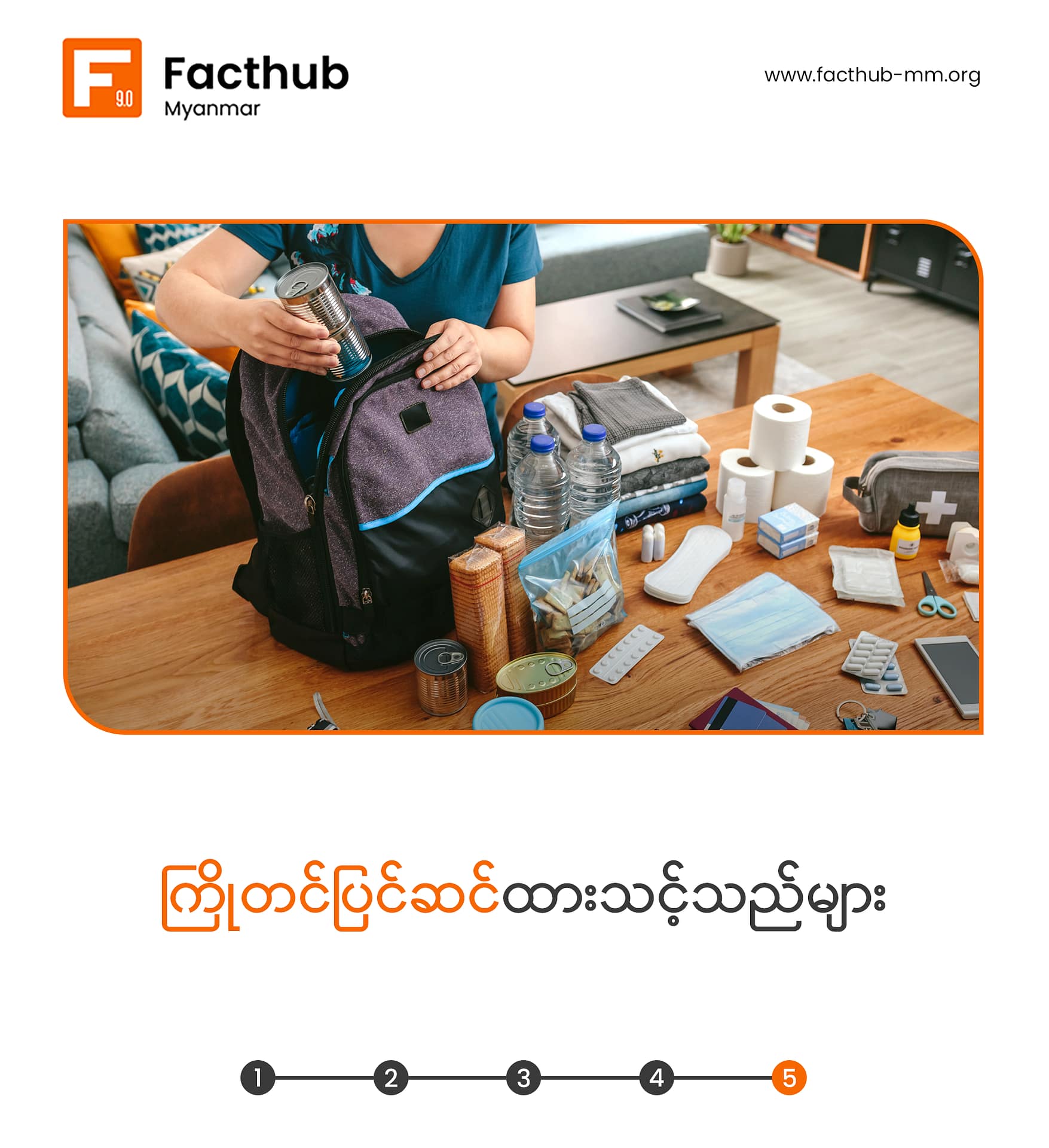 ပြင်ဆင်ထားသင့်ပြီး မိမိနေထိုင်ရာဒေသရဲ့ကယ်ဆယ်ရေးအဖွဲ့ များရဲ့ဖုန်းနံပါတ်တွေကိုလဲ စုဆောင်းထားသင့်ပါတယ်။